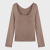 Women's Brushed Velvet Thermal U-Neck Long-Sleeve Slim Fit Top for Autumn & Winter