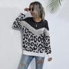 Vintage Fashion Elegant Casual Autumn Leopard Print Color Blocking Long-sleeved Loose Medium-length Round Neck Knit Sweater Women