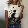 Camiseta de Verano para Mujer con Estampado de Gato de Dibujos Animados 3D Tops de Moda Camisetas Ropa Casual de Manga Corta para Dama Streetwear Harajuku Femenino