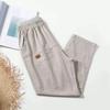Sección Delgada Pantalones de Mujer de Mediana Edad y Ancianos Sueltos Elásticos de Gran Tamaño Cintura Alta Color Sólido Algodón Elástico y Lino Nueve Puntos