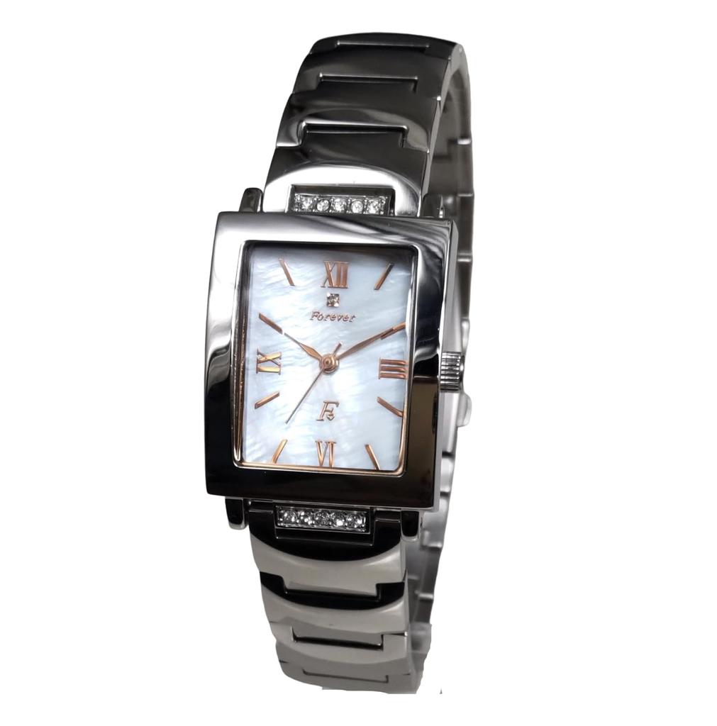 Watch Forever Shell Dial Beautiful Crystal Watch with Simple Belt Adjustment Tool FOREVER Men's FG-1205-1PG (White/PG)