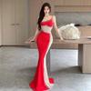 Women's Celebrity Hot Diamond Splicing Mesh Slim Dress