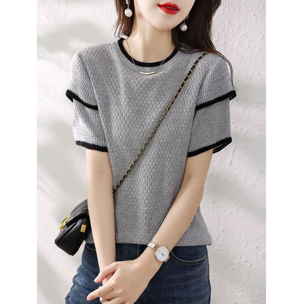Camiseta de punto para mujer de manga corta, tops de primavera y verano
