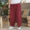 Men's Summer Loose-Fit Cotton Linen Wide-Leg Elastic Waist Sports Pants