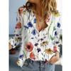 Blusa de verano para mujer con cuello en V y mangas largas estampadas