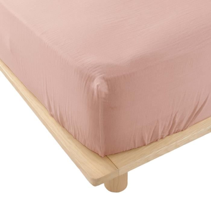 Drap housse - Angelia - 140 x 190 cm - Gaze de coton - Bonnet 30 cm - Uni rose