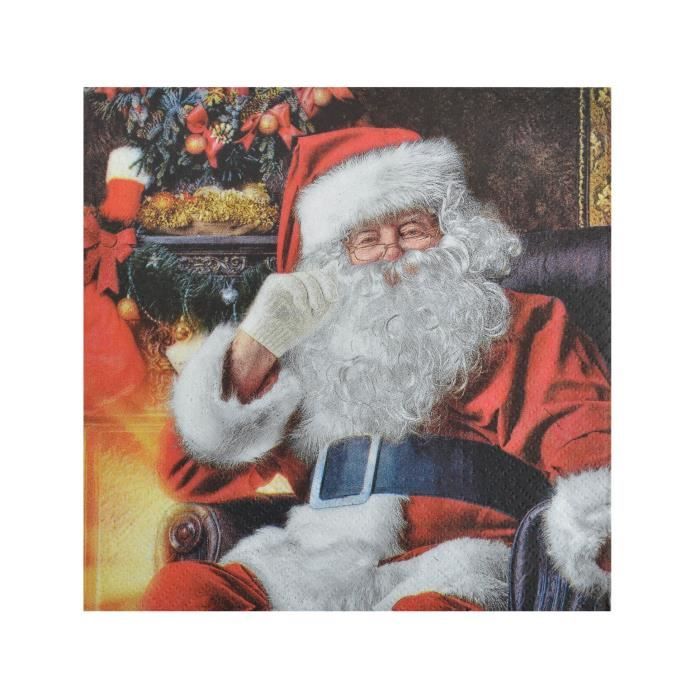 Serviettes en papier - Pere Noël - Lot de 20 - 33x33 cm - Rouge - Décoration de table