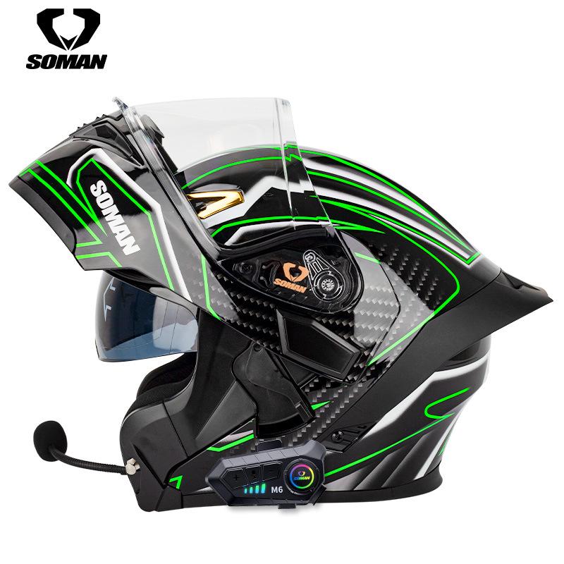 Casco de motocicleta abatible con Bluetooth y doble lente 3C Dot con auriculares M6 para todas las estaciones