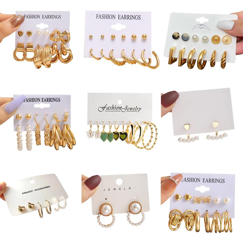 IF ME Vintage Gold Plated Earrings Set Metal Heart Twist Geometric Hollow Hoop Earrings For Woman Fashion Jewelry Gifts