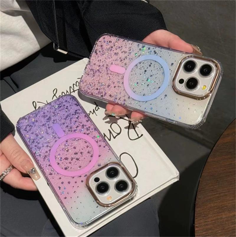 Funda Magsafe para iPhone 16 15 Pro Max Lujosa con Purpurina y Lámina Dorada Magnética para Carga Inalámbrica para iPhone 13 14 Pro Max Funda Bonita