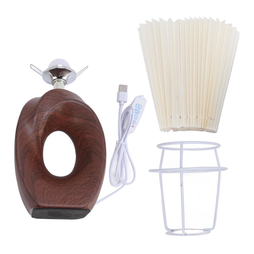 Lámpara de Noche 3 Colores Pequeña Decorativa de Mesa Luz Nocturna Atenuación Continua Grano de Nogal con Lino