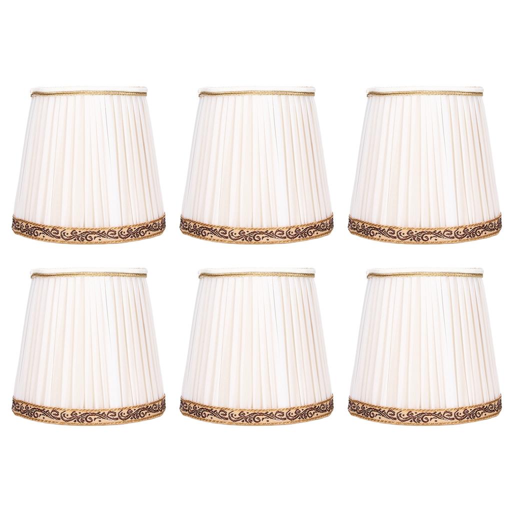 6Pcs Fabric Mesh Lamp Shade Clip On Lampshade Beige Golden Edge Style for E14 Chandelier Ceiling
