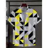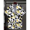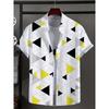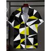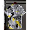 Men's shirt with novel striped patchwork pattern button up shirt, fashionable and casual new unisex shirt, vacation collar short sleeved shirt