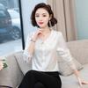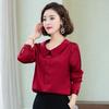 Camisa de satén de manga larga con cuello de muñeca para mujer, color rojo, versátil y moderna, para otoño