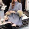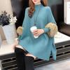 Autumn and Winter New Fur Sleeve Cape Shawl Half High Collar Knitted Pullover Sweater Loose Jacket for Women