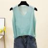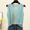 Top de Punto de Seda de Hielo sin Mangas Holgado Interior Plus Plus con Pedrería Camisola con Cuello en V Verano de Mujer