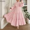 ZANZEA Vestido Musulmán de Manga Larga Casual Holgado con Estampado para Mujer