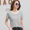 Camiseta de rayas para mujer, elegante, ajustada, con cuello redondo, manga corta, de algodón, holgada, informal, de punto, para oficina, de verano
