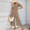VEZFAA Monos y mamelucos de moda para mujer, informales, de verano y primavera, de manga corta, con cuello cuadrado y cintura alta