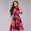 Vestido de fiesta vintage floral de corte A para mujer, con mangas de siete puntos y cuello redondo.