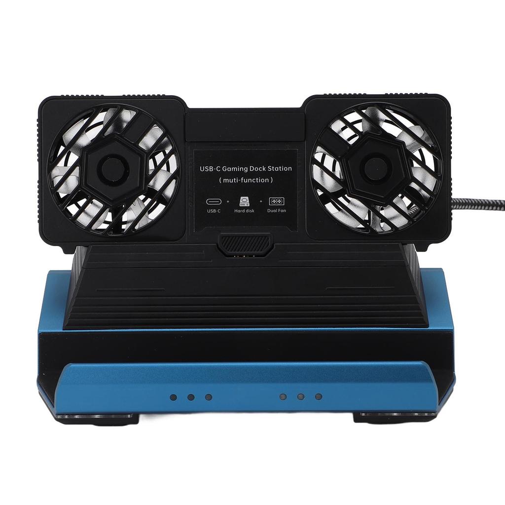 1. 10 in 1 Docking Station: 10 ports include 1 USB C to HD multimedia interface 2.0 (4K 60Hz), 1 gigabit ethernet port (1000Mbps), 1 storage card slot (U3), 1 memory card slot (U3), 4 USB 3.0 port (5Gbps), 1 USB C PD port (100W), 1 M.2 NVMe Slot. Additionally, the dock station is equipped with dual cooling fans for effective heat dissipation, ensuring a seamless gaming experience.