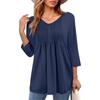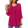 Tops de mujer con cuello en V, manga tres cuartos, rayas, plisados, casuales, camisas de moda de verano