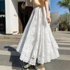 Falda de encaje de primavera y verano para mujer Falda larga de una línea Falda plisada hueca de gasa con dobladillo grande