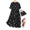 Moda Mujer Suelto Estampado de Lunares Juguetón Cuello O Manga Corta Estampado de Hojas Suelto Ropa de Calle Vestido A-line