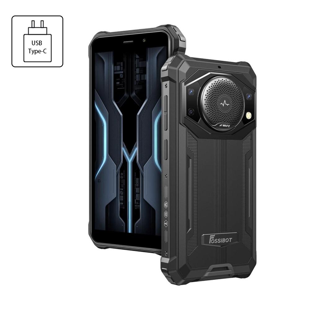 Smartphone resistente FOSSIBOT F101P con batería de 10600 mAh y carga rápida de 18 W. Y cuando llega el momento de recargar, la tecnología de carga rápida de 18 W de este teléfono garantiza que puedas proporcionar energía rápidamente a otros dispositivos electrónicos en situaciones de emergencia.
