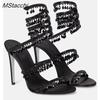 Sandalias Envolventes de Cristal Mujer Verano Zapatos de Boda Tacón Alto Zapatos de Fiesta Sandalias con Tiras al Tobillo Zapatos de Diseño con Tacón de Aguja