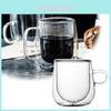 Juego de 2 tazas de vidrio Nishida de doble capa resistentes al calor, de doble pared y con asa, con una bonita estructura de 2 capas, resistentes al calor y al frío.