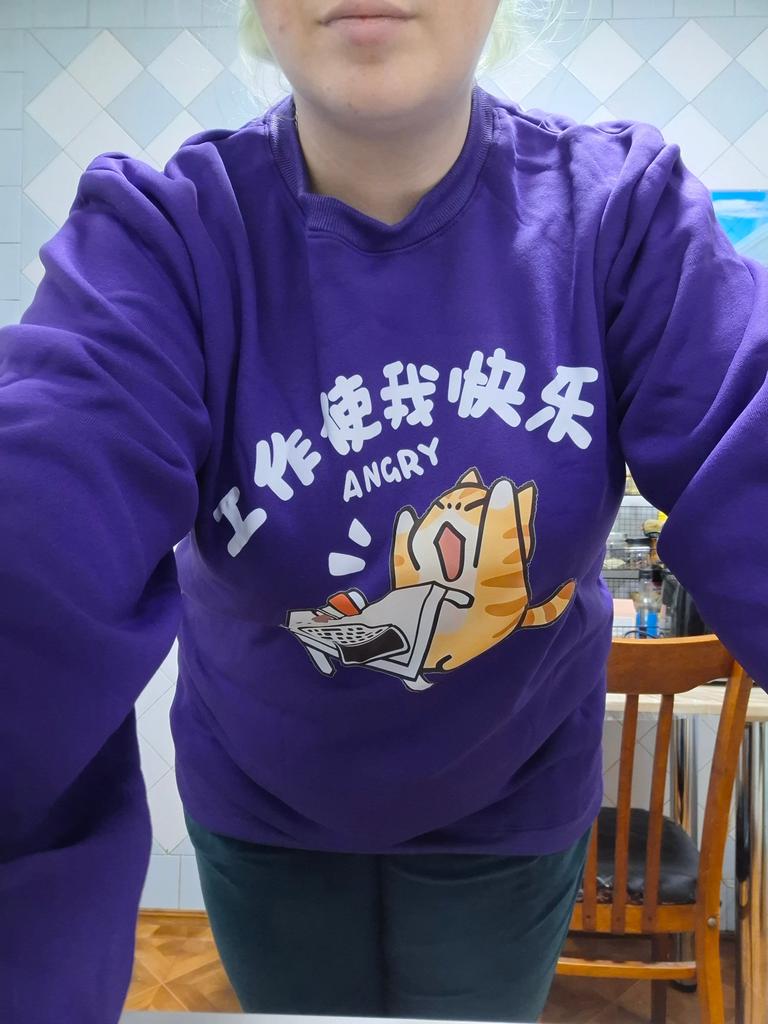 El trabajo me hace feliz Gato divertido Estampado lindo Dibujos animados Sudadera con capucha Hombre Mujer Forro polar Jersey Sudadera Cuello redondo