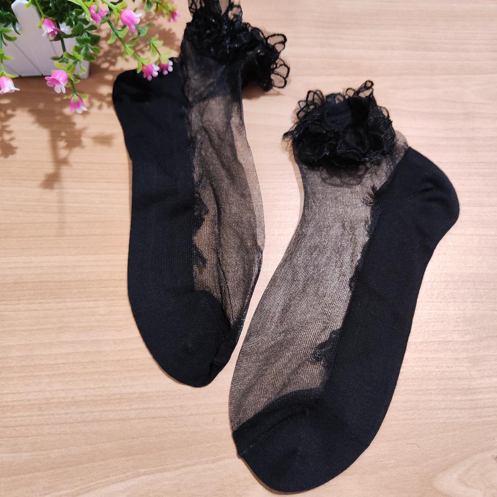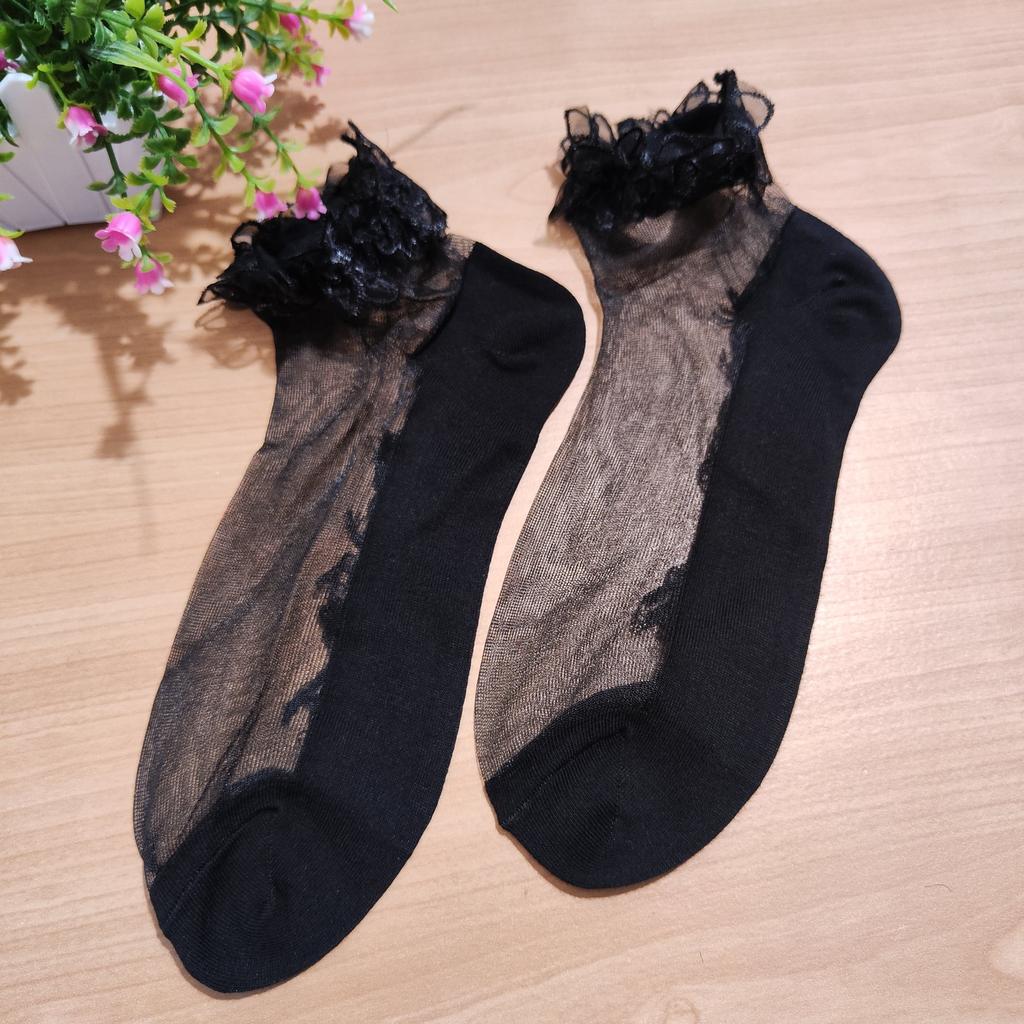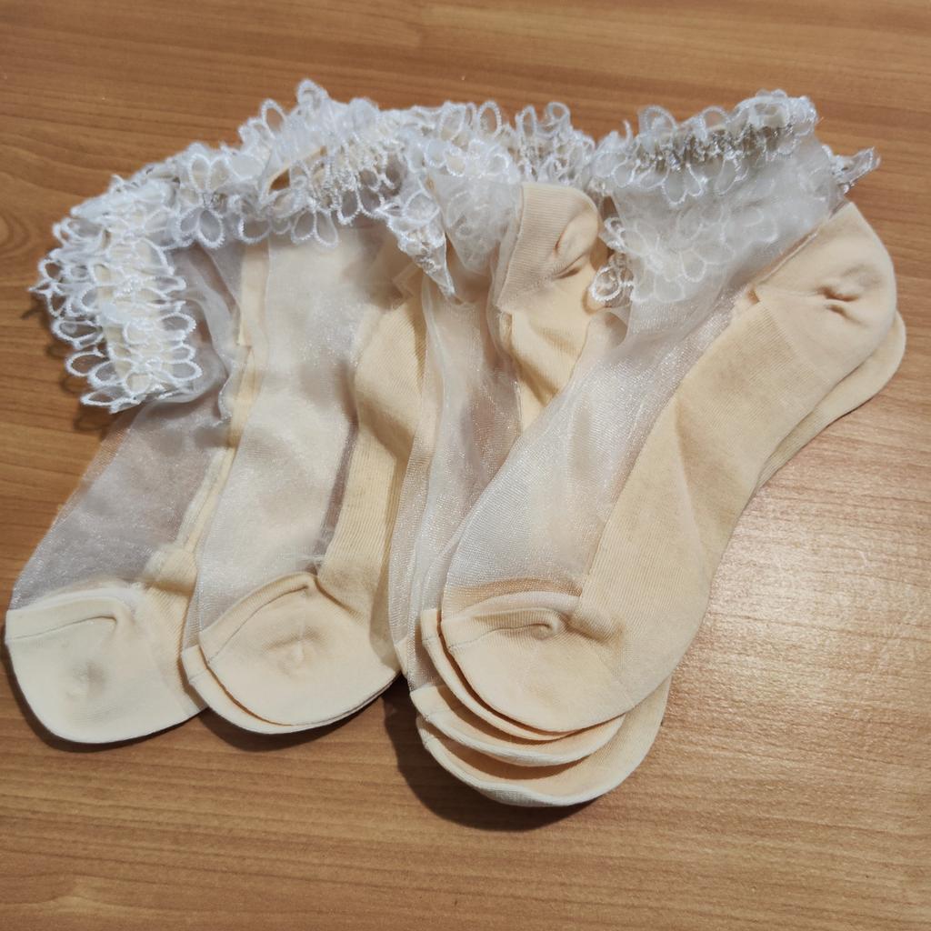 Calcetines transparentes suave fibra superior en el pie tejido de algodón goma elástica adornada con encaje. En el set 5 pares. Varios colores a elegir. Lo recomiendo mucho.👍