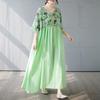 DIMANAF 2025 Summer Women New Plus Size Dress Spliced Basic Casual Loose Long Vintage V-Neck Pleated Dress Maxi