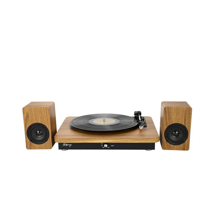 Platine vinyle halterrego av 2 hp extérieurs, rms 2*5w,rca out, bt in, adaptateur inclus , finition laquée noire/asp bois