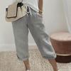 Pantalones casuales de algodón y lino con bolsillos elásticos para mujer, pantalones holgados casuales, ropa de diario, ropa de mujer