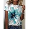 Camiseta de Verano de Cuello Redondo con Estampado Floral 3D, Moda Casual de Manga Corta para Mujer