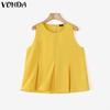 VONDA Tops de Tirantes Casuales Plisados sin Mangas con Cuello O para Mujer de Verano