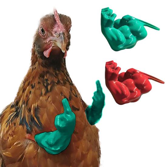 Diseño: Con un par de brazos con los puños cerrados y otro con los dedos medios levantados, estos juguetes de brazo de pollo de PLA ofrecen un giro peculiar y humorístico al atuendo de tu mascota.