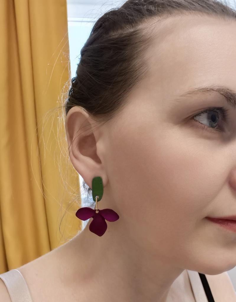 Pendientes florales morados de alta gama retro 2024: Declaración única y elegante para mujeres
