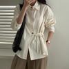2025 Women's Avocado Green Chic Long-Sleeve Sunscreen Blouse with Irregular Slit