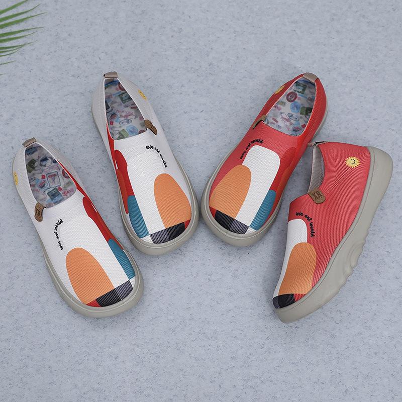 Zapatos de tela informales con tejido de mosca, deportivos, pintados, sencillos, transpirables, de suela suave, con estribos de moda para mujer.