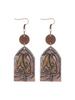Pendientes de madera con cabeza de toro y estampado floral para mujer