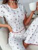 Women's Long-Sleeve Waffle Pajamas: Smiley Face, Two-Piece, Round Neck, Cute Homewear