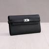 Cartera larga elegante de piel de vaca con estampado de palmeras para mujer