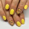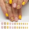 24 Piezas Uñas Postizas Cortas Cuadradas Flores Uñas Falsas Uña Acrílica Amarilla Brillante Cobertura Completa Adhesivas para Mujer