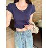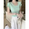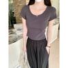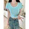 Camiseta de algodón puro de color liso con cuello en U y hombros descubiertos para mujer, nueva camiseta de verano, corta y ajustada.
