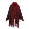 Abrigo Chal de Punto de Lana con Cuello de Piel de Leopardo para Mujer