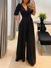 Mono de encaje con escote en V y cintura alta para mujer, primavera de 2025, con mangas abullonadas