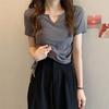 Experience the perfect blend of comfort and style with this V-neck slim fit short sleeve T-shirt for women. Constructed from luxurious artificial silk material, the top offers a soft, milk-silk feel against the skin, ensuring maximum comfort during the warm summer months. The solid color design complements any outfit, making it easy to dress up or down for any occasion. Its flattering V-neckline and slim fit silhouette enhance your figure, while the short sleeves provide a breezy, relaxed feel. Elevate your summer wardrobe with this trendy and versatile top.